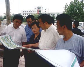 2004年8月國(guó)家環(huán)??偩诸I(lǐng)導(dǎo)視察指導(dǎo)工作 上圖右一為集團(tuán)公司總工程師穆乃杰