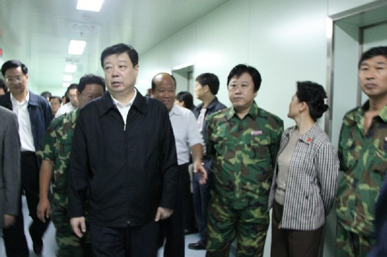 2010年9月25日,由集團(tuán)公司援建的北川羌族自治縣人民醫(yī)院正式掛牌投入使用。在簡(jiǎn)短的開(kāi)業(yè)儀式之后,中共山東省委書記、省人大主任姜異康參觀、視察了人民醫(yī)院工程建設(shè)情況,集團(tuán)公司總經(jīng)理朱九洲、副總經(jīng)理閆鵬、援川指揮部總指揮孫孔喜等陪同。在參觀、視察過(guò)程中,姜異康書記對(duì)濰坊和昌大的援建工作給予了充分肯定,并代表省委、省政府對(duì)全體援建人員表示感謝和親切慰問(wèn)。參觀、視察結(jié)束后,援建人員齊唱“濰坊援建之歌”,獻(xiàn)給山東的親人。 ![]() 總經(jīng)理朱九洲(右三)陪同省委書記姜異康視察援建北川人民醫(yī)院