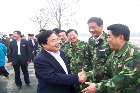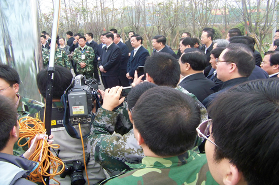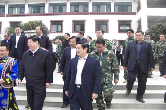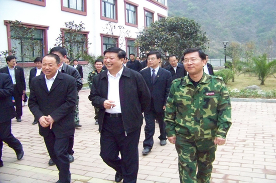 4月10日上午,山東省黨政代表團(tuán)在省委書記姜異康、省長(zhǎng)姜大明率領(lǐng)下,到北川新縣城檢查指導(dǎo)援建工作,山東省十七地市黨政負(fù)責(zé)人參加檢查。