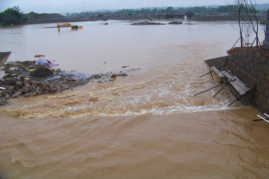 7月24日至25日,一場特大暴雨突襲北川新縣城,集團(tuán)公司援建的多處工地受到影響。至25日凌晨,職工宿舍、辦公室、食堂等地方進(jìn)水高達(dá)40cm,集團(tuán)公司的援川人員,特別是第八分公司的員工及時(shí)展開自救。幾個(gè)小時(shí)內(nèi),大家先后將室內(nèi)的物品轉(zhuǎn)移到高處沒有進(jìn)水的房間,天一亮,指揮部便緊急組織工地?fù)岆U(xiǎn),大家分工協(xié)同,分別趕赴安昌河下游施工段和安昌河已驗(yàn)收河段查看受災(zāi)情況……由于指揮部早在20日就下達(dá)安昌河防防汛通知,各施工單位提前應(yīng)對,從而保證在這次特大洪水來臨時(shí),所有施工人員安全撤離、所有材料轉(zhuǎn)移(由于汛情超過預(yù)想,第八分公司安昌河下游施工段景觀濕地形成了大面積積水致使一些土方機(jī)械過水)。此次洪水來襲,已竣工的安昌河段安然無恙,第八分公司正在施工的安昌河下游溢流堰、擋水堰已經(jīng)合攏,經(jīng)受住了洪水沖擊。 ![]() 洪水中的施工現(xiàn)場