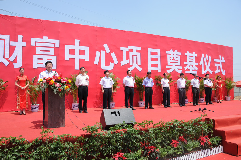 5月28日,財富中心項目舉行奠基儀式。在主席臺的領導及嘉賓有:高新區(qū)黨工委委員、管委會副主任譚建民,高新區(qū)建設局黨委書記、局長鐘光文,高新區(qū)新城街辦黨委書記杜月新,濰坊金正房地產開發(fā)有限公司董事長張汝建,聯合潤通水務有限公司副總經理胡義,濰坊金正房地產開發(fā)有限公司總經理匡衛(wèi)東。 集團公司董事長徐鵬強、總經理朱九洲出席奠基儀式。參加儀式的還有高新區(qū)管委會有關部門的領導,集團公司第四分公司、安裝分公司、裝飾窗業(yè)分公司部分員工,濰坊金正房地產開發(fā)有限公司部分員工。 財富中心項目位于高新區(qū)勝利街以北、志遠路以東,項目占地1.4萬平方米,總建筑面積為13.6萬平方米,整個項目分為兩期施工,第一期為按五星級標準建設的財富國際大酒店(地上27層地下3層,建筑面積5萬平方米),二期工程為170米超高建筑(地上38層,地下3層,建筑面積為8萬平方米)。項目由濰坊金正房地產和深圳聯合潤通水務有限公司聯合開發(fā)。整個項目建設由第四分公司負責實施。 財富中心項目,是金正房地產公司投資打造的又一城市綜合體項目。此前,已完成了總建筑面積達28萬平方米,濰坊第一個城市綜合體項目--財富廣場的開發(fā)。