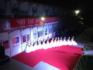 2016年5月27日晚,濰坊市總工會(huì)“中國(guó)夢(mèng)?勞動(dòng)美職工藝術(shù)團(tuán)下基層慰問演出”在集團(tuán)自行開發(fā)、建設(shè)中的泰和東郡工程現(xiàn)場(chǎng)辦公區(qū)進(jìn)行。演出從晚上七點(diǎn)半開始,在一個(gè)半小時(shí)的時(shí)間里,這個(gè)40人的藝術(shù)團(tuán)共演出包括獨(dú)唱、合唱、舞蹈、朗誦等節(jié)目在內(nèi)的12個(gè)節(jié)目。在盛夏即將到來(lái)的夜晚,讓職工藝術(shù)沁潤(rùn)施工現(xiàn)場(chǎng)的勞動(dòng)者。