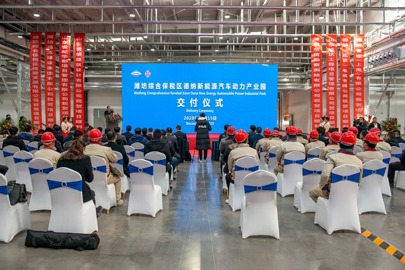 2020年12月15日上午,濰坊綜合保稅區(qū)德納新能源動力產(chǎn)業(yè)園交付儀式在項(xiàng)目現(xiàn)場舉行。集團(tuán)總經(jīng)理朱九洲出席儀式并與出席儀式的各方領(lǐng)導(dǎo)共同啟動項(xiàng)目。綜合保稅區(qū)領(lǐng)導(dǎo)和有關(guān)部門負(fù)責(zé)人朱蘭璽、張華、周國、劉珍榮、竇秉超、房偉、闞永美、徐海波,德納中國區(qū)總裁馬庫斯·金、德納亞太區(qū)市場傳訊及政府關(guān)系總監(jiān)文君竹、德納(山東)電機(jī)有限公司總經(jīng)理朱陽城等出席交付儀式。集團(tuán)二建公司、安裝公司、機(jī)施公司、三裝公司以及德納公司、威達(dá)監(jiān)理、世紀(jì)華都項(xiàng)目管理公司有關(guān)領(lǐng)導(dǎo)和員工代表參加交付儀式。交付儀式上,播放了《德納項(xiàng)目建設(shè)紀(jì)實(shí)片》,濰坊綜保區(qū)黨工委書記朱蘭璽、德納中國區(qū)總裁馬庫斯·金分別致辭。綜保區(qū)四級專員劉珍榮宣讀了表揚(yáng)通報(bào),集團(tuán)二建公司王昆山、魏鵬、三裝公司蘇梅新、安裝公司王立安、機(jī)施公司王強(qiáng)受到通報(bào)表揚(yáng)。朱蘭璽為文君竹頒發(fā)優(yōu)秀合作獎(jiǎng)獎(jiǎng)杯和榮譽(yù)證書,德納中國區(qū)總裁馬庫斯·金分別為張華、劉珍榮、綜保區(qū)投資發(fā)展有限公司頒發(fā)“企業(yè)發(fā)展貢獻(xiàn)獎(jiǎng)”、“德納項(xiàng)目杰出貢獻(xiàn)獎(jiǎng)”、“德納項(xiàng)目擔(dān)當(dāng)作為獎(jiǎng)”獎(jiǎng)杯和榮譽(yù)證書。綜保區(qū)投資公司總經(jīng)理徐海波向德納(山東)電機(jī)有限公司總經(jīng)理朱陽城交付鑰匙??偨?jīng)理朱九洲與馬庫斯·金、朱蘭璽、周國、文君竹、朱陽城等領(lǐng)導(dǎo)共同為廠房開啟啟動儀式。 交付儀式由綜保區(qū)黨工委委員、管委會副主任張華主持,交付儀式結(jié)束后,出席儀式的領(lǐng)導(dǎo)共同參觀了新建廠區(qū)并合影留念。 |