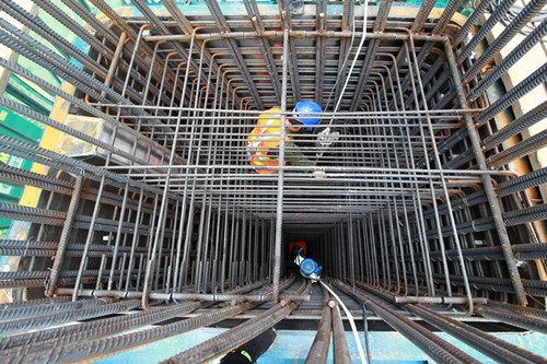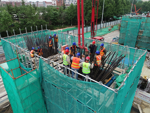 寶通街高架快速路集團標段第一座墩柱正式澆筑