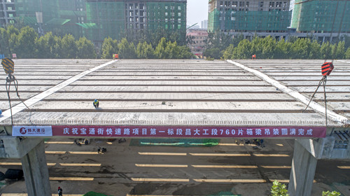 集團(tuán)承建寶通街快速路項(xiàng)目順利進(jìn)入全新節(jié)點(diǎn)——高架箱梁吊裝全部完成