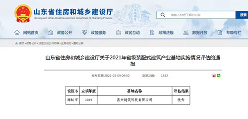 近日,山東省住建廳發(fā)布了《山東省住房和城鄉(xiāng)建設廳關于2021年省級裝配式建筑產業(yè)基地實施情況評估的通報》。山東省共有121家產業(yè)基地通過評估,其中,省級現場評估的44家產業(yè)基地中,昌大建筑科技有限公司等12家產業(yè)基地評估結果為“優(yōu)秀”。