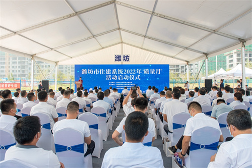 2022年9月1日上午,濰坊全市住建系統(tǒng)2022年“質(zhì)量月”活動在濰坊市東方名著項(xiàng)目現(xiàn)場舉行啟動儀式,市住建局黨組書記、局長鐘光文出席活動,就本次活動提出相關(guān)要求,并與嘉賓一同按下開啟按鍵,拉開了2022年濰坊市“質(zhì)量月”活動序幕。市住建局黨組成員、建筑業(yè)發(fā)展服務(wù)中心主任許增賢出席活動。集團(tuán)公司總裁朱九洲出席啟動儀式并代表施工企業(yè)作表態(tài)發(fā)言。集團(tuán)公司總工程師房海赴臨沂主會場參加活動并接受2021年度優(yōu)質(zhì)結(jié)構(gòu)獎(jiǎng)?lì)C獎(jiǎng)。 在今天濰坊“質(zhì)量月”活動啟動儀式上,與會人員在現(xiàn)場通過網(wǎng)絡(luò)觀看了全省在臨沂主會場,主題為“推動質(zhì)量變革創(chuàng)新、促進(jìn)質(zhì)量強(qiáng)國建設(shè)、建設(shè)品質(zhì)工程、筑就美好生活”的質(zhì)量月活動啟動儀式。在主會場儀式上,有主會場當(dāng)?shù)仡I(lǐng)導(dǎo)和省廳有關(guān)領(lǐng)導(dǎo)的致辭講話、有部署全省住建系統(tǒng)質(zhì)量月活動安排、觀看《匠心筑夢質(zhì)享未來》工程質(zhì)量提升成果專題片、通報(bào)山東省近十年?duì)巹?chuàng)魯班獎(jiǎng)和國家優(yōu)質(zhì)工程獎(jiǎng)情況、為2021年優(yōu)質(zhì)結(jié)構(gòu)獎(jiǎng)代表頒發(fā)證書、為“天元大工匠”代表頒發(fā)證書,建設(shè)、施工、勘察、設(shè)計(jì)、監(jiān)理、檢測等行業(yè)代表宣讀關(guān)于落實(shí)工程質(zhì)量的倡議書、各地市質(zhì)量提升成果展示等等。在濰坊啟動儀式上,項(xiàng)目建設(shè)單位、總承包施工企業(yè)和監(jiān)理企業(yè)代表作了表態(tài)發(fā)言。 濰坊各縣市、市屬各開發(fā)區(qū)住建局局長、建筑業(yè)中心主任或質(zhì)量安全服務(wù)站站長;中心城區(qū)(奎文、濰城、坊子、寒亭、高新)監(jiān)管機(jī)構(gòu)質(zhì)量監(jiān)督人員代表;高新區(qū)工程項(xiàng)目建設(shè)單位、施工單位、監(jiān)理單位代表 參加會議。 據(jù)悉,今年9月是全國第45個(gè)質(zhì)量月。 本次活動還是加強(qiáng)了疫情管控,所有參會人員在近14天均不得途經(jīng)中高風(fēng)險(xiǎn)地區(qū)和必須提供48小時(shí)核酸陰性證明。