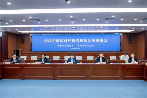2024年2月29日上午,濰坊市依法護(hù)航民營經(jīng)濟(jì)高質(zhì)量發(fā)展座談會(huì)在濰坊市中級(jí)人民法院會(huì)議室召開。市政府副市長、市工商聯(lián)主席陳端梅,市委統(tǒng)戰(zhàn)部副部長、市工商聯(lián)黨組書記劉興成,市工商聯(lián)黨組成員副主席譚述霞出席會(huì)議。市委政法委、市工商聯(lián)相關(guān)工作人員,商會(huì)會(huì)長代表、企業(yè)家代表、民營企業(yè)法務(wù)中心代表參加會(huì)議。集團(tuán)公司總裁朱九洲出席會(huì)議并作交流發(fā)言,代表企業(yè)家感謝市中院及法院系統(tǒng)在依法護(hù)航企業(yè)發(fā)展過程中給予的支持,同時(shí)建議法院系統(tǒng)繼續(xù)依法對(duì)民營企業(yè)提供法律保護(hù)等。
