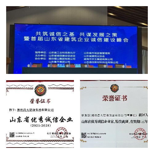 集團(tuán)榮獲首屆山東省優(yōu)秀誠(chéng)信企業(yè)稱號(hào) 董事長(zhǎng)徐鵬強(qiáng)被評(píng)為山東省優(yōu)秀誠(chéng)信企業(yè)家